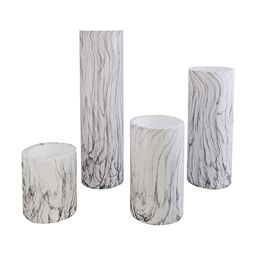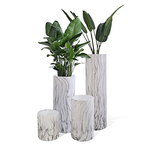 MEHR ZU LILY. Farbe: Weiße Marmoroptik I Material: Fiberglas I Maße: ø 35 x 120 cm, ø 35 x 90 cm, ø 35 x 60 cm und ø 35 x 40 cm (Durchmesser x Höhe)