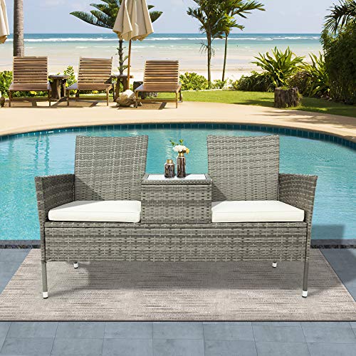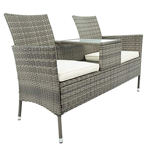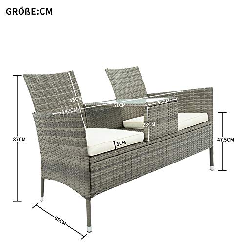 Für 2 Personen: Es gibt einen eingebauten Tisch zwischen den beiden Absitzen. Die Tischplatte besteht aus robustem Sicherheitsglas. Sehr hart im Nehmen und leicht zu schrubben. Kühle Getränke und Snacks können leistungsfähig auf einem 35 x 51 cmischen Tisch platziert werden. Nur ist dieses Set ideale Outdoor-Ausstattung für Gärten, Terrassen oder Balkone, Hinterhöfe, Swimmingpools und ideal für den Wochenend-Social Events. Es eignet sich sehr als Ressort von 2 Personen.
