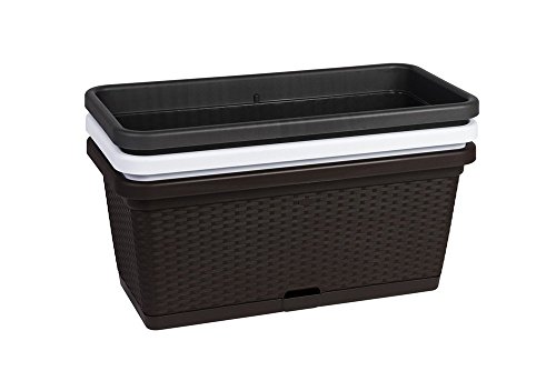 Mit der praktischen Breite von 80 cm lässt sich dieser Pflanzkübel in moderner Rattan-Optik optimal auf Balkonen, Terrassen oder bekannt als vor Türen – zuhause oder vor Gastronomie und Gewerbe – platzieren.