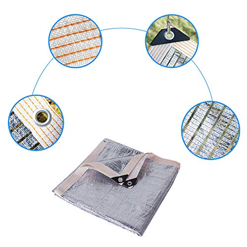 Haltbarkeitsmaterial: Dieses aluminisierte Schattentuch zeigt HDPE-Polyethylen-Gewirke und ist so konstruiert, dass es Wasser und Hitze standhält. Leicht, atmungsaktiv und langlebig, mit einer Lebensdauer von mehr als 3 Jahren.