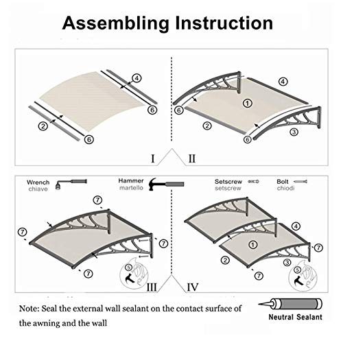 ? Für Türen, Fenster und Abschirmung vor Regen. Der Baldachin schützt vor Regen. Schnell und einfach zu montieren Die Installation erfolgt durch Befestigen der Halterungen an der Wand mit der mitgelieferten Hardware.