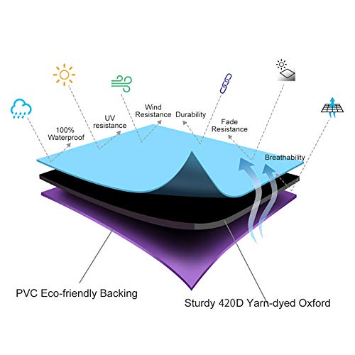 Wasserdicht: Hergestellt aus 185gsm integriertem Gewebe, das 420D Oxford und hochwertige PVC kombiniert, dass Ihr Tisch bei Regen und Schnee nicht nass wird