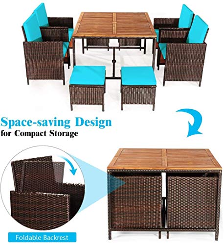 8 Sitz-Set & Esstisch: Diese 9-teilige Terrasse-Ess-Set umfasst 4 Sessel, 4 Osmanen Unter anderem einen Esstisch. Es bietet 8 bequeme Sitze, um den Bedürfnissen vieler Gäste gerecht zu werden. Unter anderem die geräumige Akazienholz-Tischplatte bietet genügend Platz statt dessen Getränke Unter anderem Lebensmittel. Am wichtigsten ist, dass es ein 2,16-Gebühr-Regenschirmloch auf dem Tisch gibt, um die meisten Sonnenschirme aufzunehmen.