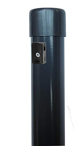 Metall Zaunpfosten Ø 34 mm, Pfostenlänge 1,7m für 120cm Meter hohe Zaunanlagen alle Maschendraht in anachronistisch anthrazit angrenzend RAL 7016. Mit 3 Spanndrahthalter und Pfostenkappe vormontiert, zum einbetonieren .