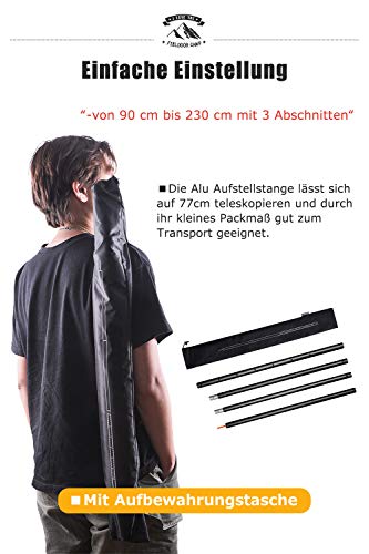 “Das in der Länge verstellbare Gestänge ist aus hochwertigem Aluminium hergestellt und vereint leichtes Gewicht und große Stabilität.